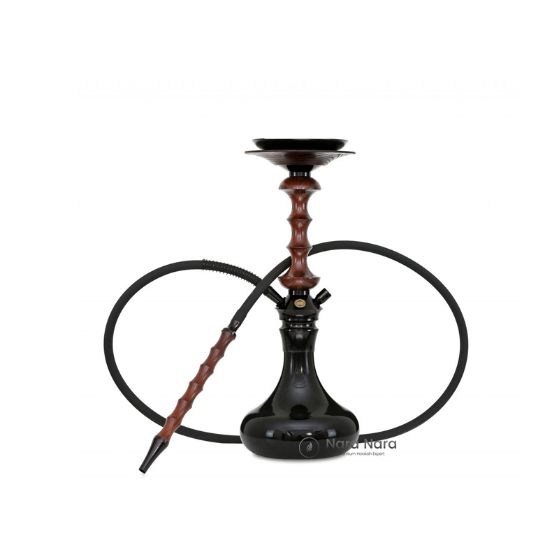 The Japona Hookah jar is black and has an aluminum part on the neck, which highlights the design of the water pipe and makes the transition look very harmonious. The bowl is 240 mm high, the wall thickness is about 6-7 mm and the inner diameter of the neck is 45 mm. In addition, the Japona Hookah also features a removable diffuser(difuser), which ensures pleasantly quiet smoking. The supplied mouthpiece is made of precious wood to match the body and has a 10 mm diameter stainless steel tube inside. In addition to the mouthpiece,a silicone hose, a hose connector, the valve as well as all the seals are also included.